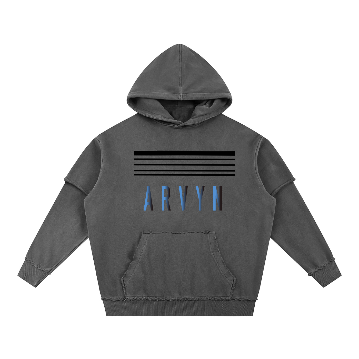 ARVYN-Snow Washed Raw Edge Double Layered Hoodie
